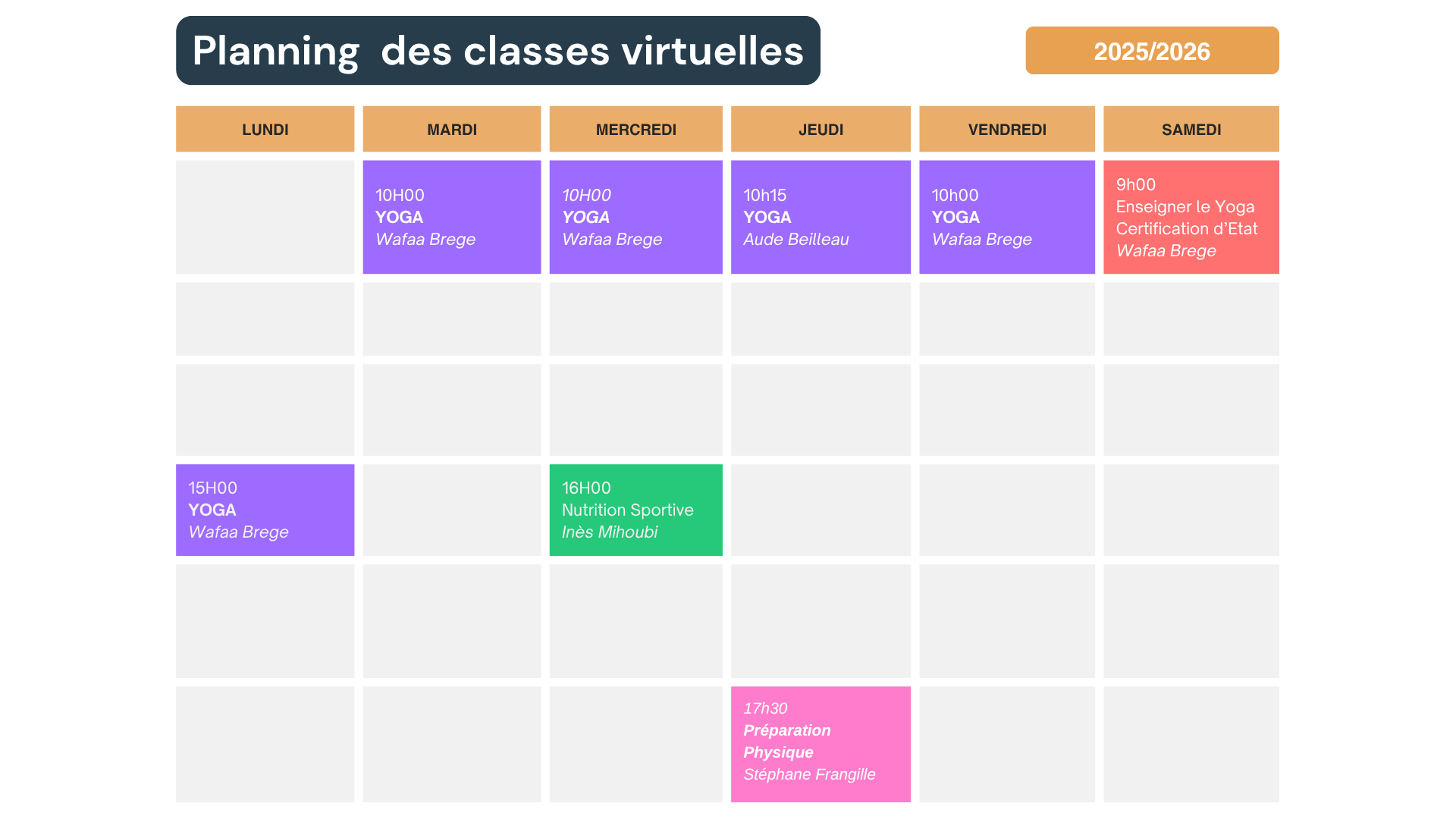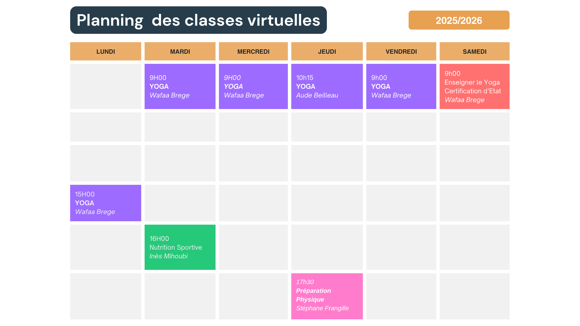 Attention, le créneau du samedi est réservé aux personnes inscrites au Yoga R.S et non au Yoga 200H